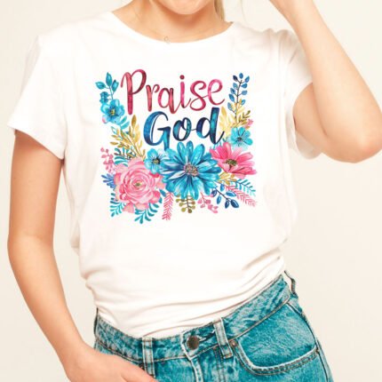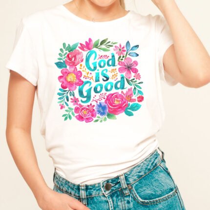 Remera con diseño cristiano con flores Cód. FFR001