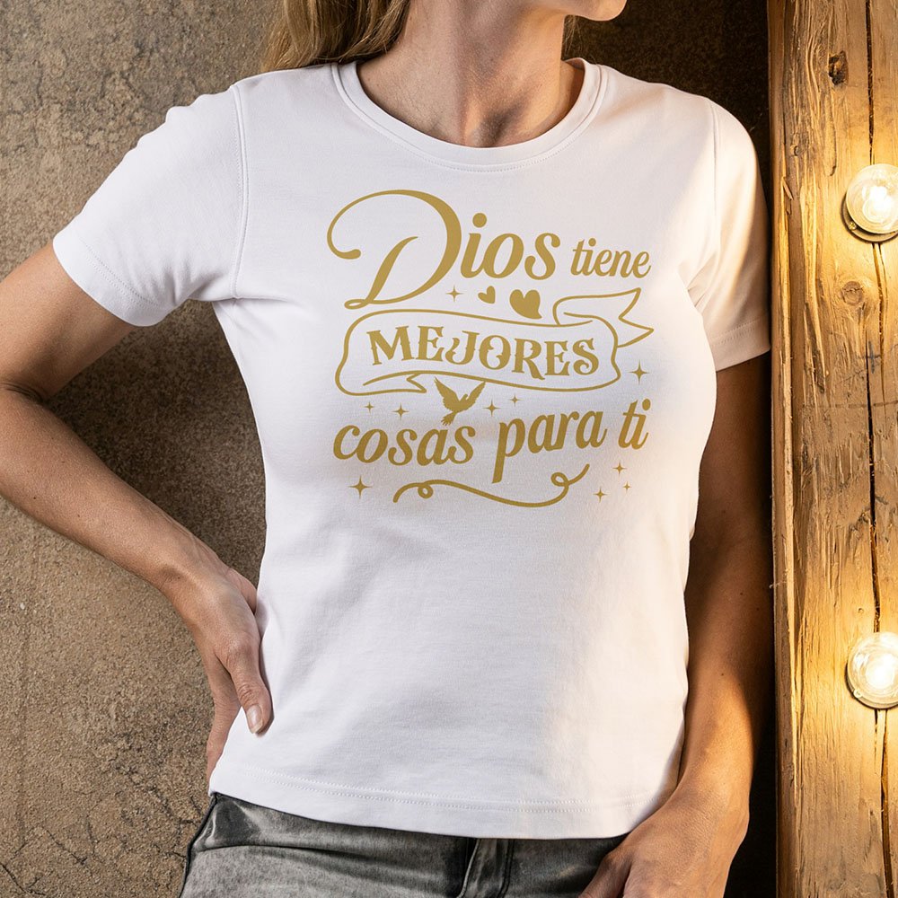 Remera con diseño cristiano en dorado Cód. FAD025